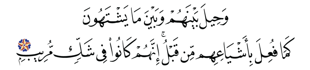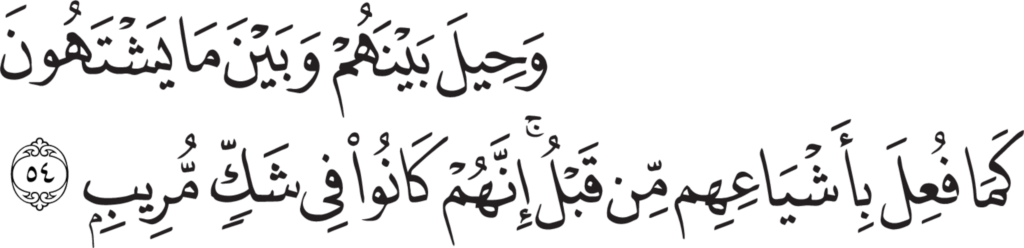 | Saba’ 34, 54 | Qur’an Naskh Al-Fath Quran | ![]() |