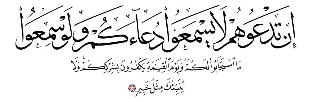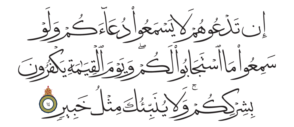 | Al-Fatir 35, 14 | Qur’an Naskh Al-Fath Quran | ![]() |