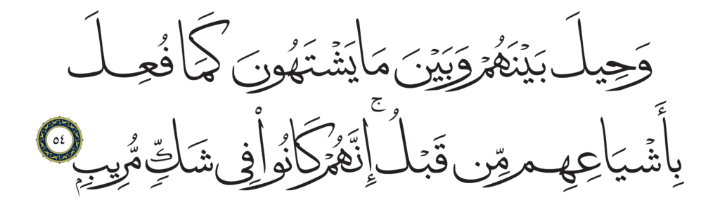 | Saba’ 34, 54 | Qur’an HM Queen Alia’s Mushaf | ![]() |