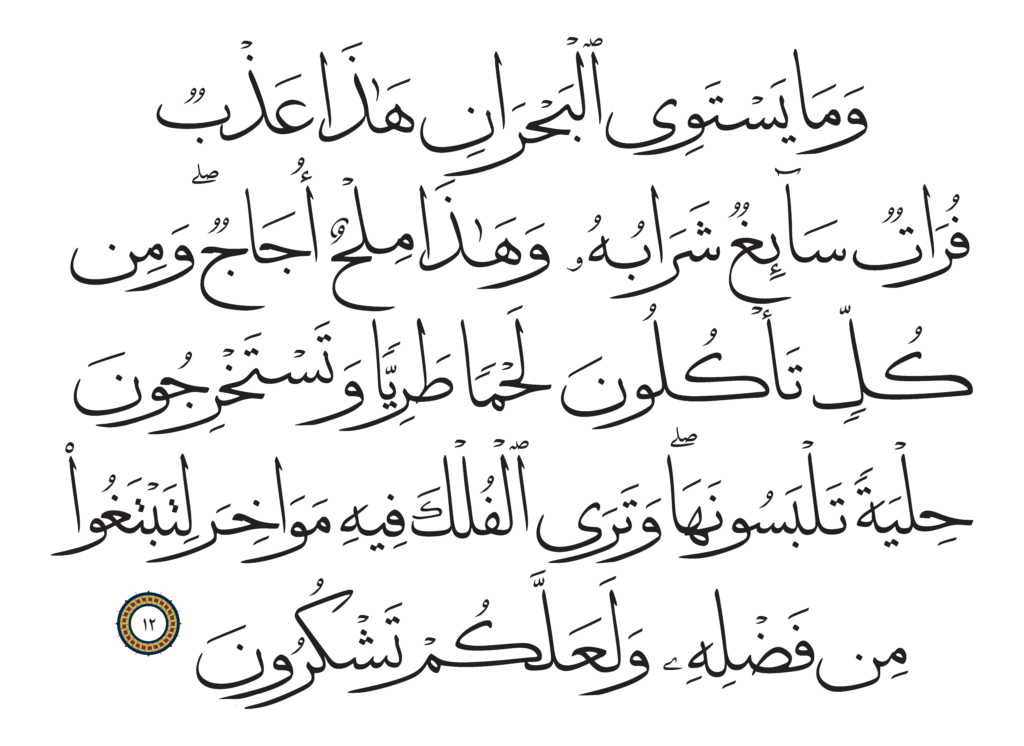 | Al-Fatir 35, 12 | Qur’an Naskh Al-Fath Quran | ![]() |