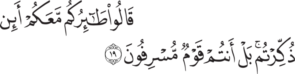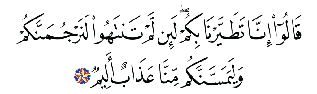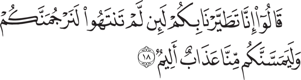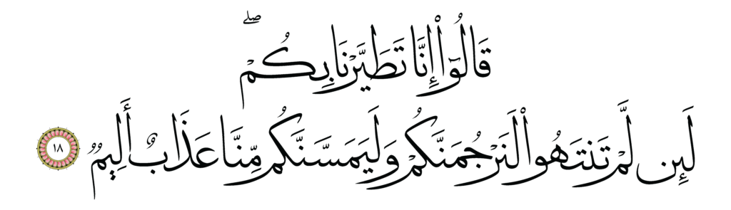 | Ya Sin 36, 18 | Qur’an Naskh Al-Fath Quran | ![]() |