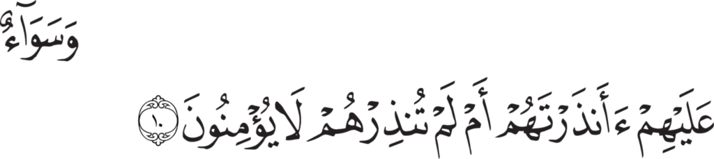 | Ya Sin 36, 10 | Qur’an Naskh Al-Fath Quran | ![]() |