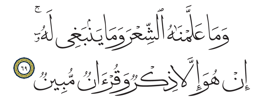 | Ya Sin 36, 69 | Qur’an Naskh Al-Fath Quran | ![]() |