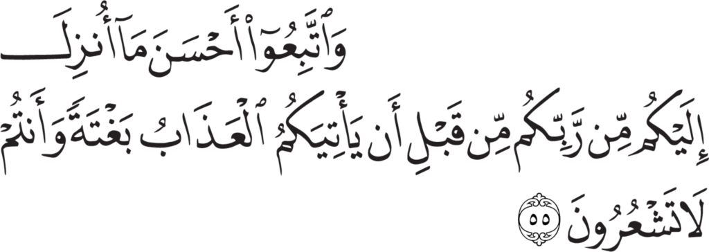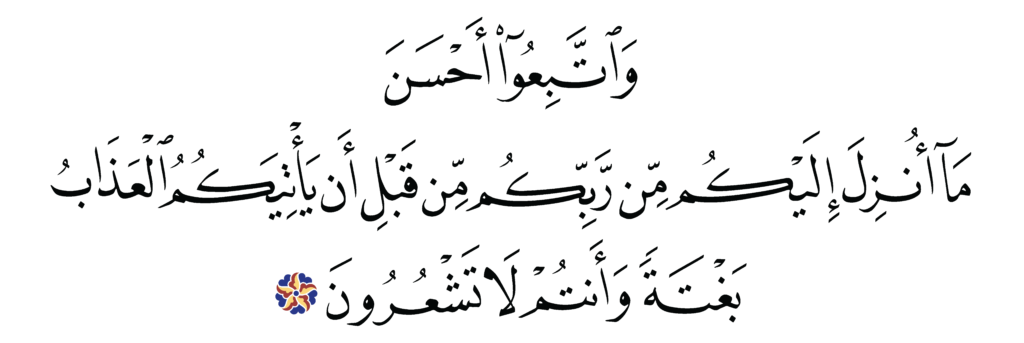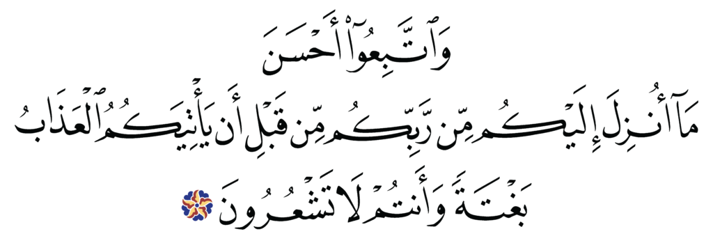 | Al-Zumar 39, 55 | Qur’an Naskh Al-Fath Quran | ![]() |