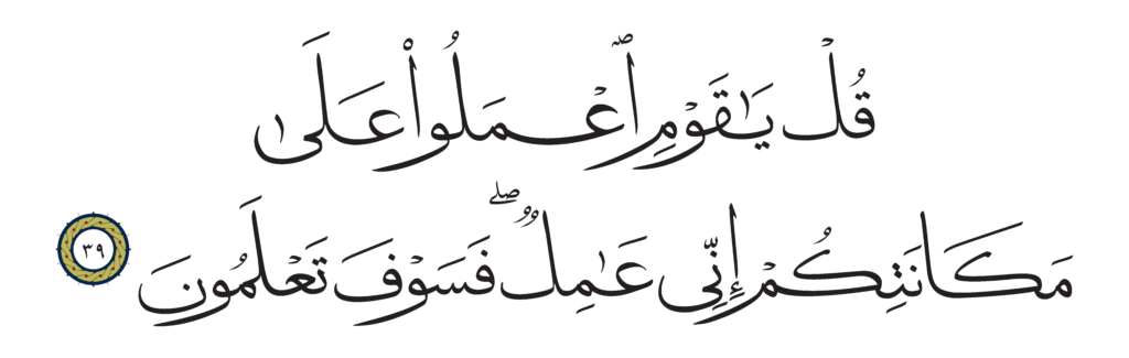 | Al-Zumar 39, 39 | Qur’an Naskh Al-Fath Quran | ![]() |