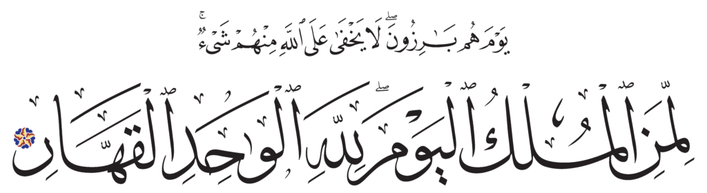 | Ghâfir 40, 16 | Qur’an HM Queen Alia’s Mushaf | ![]() |