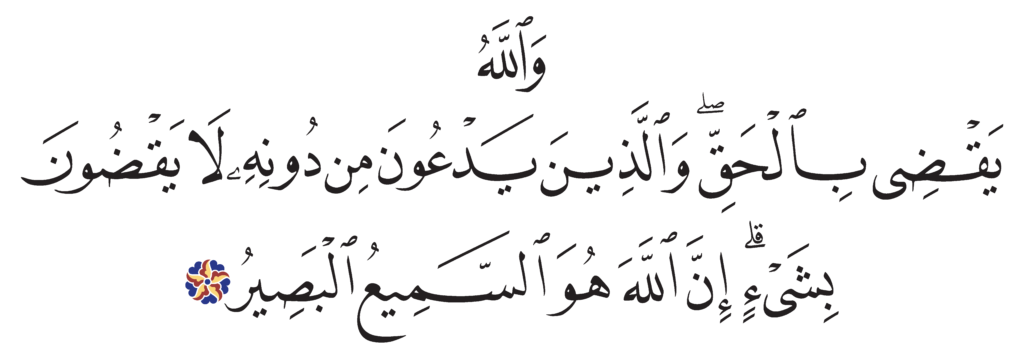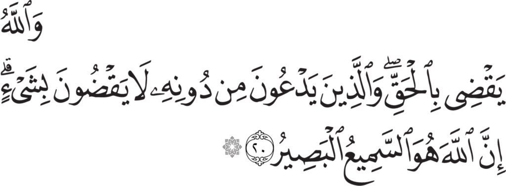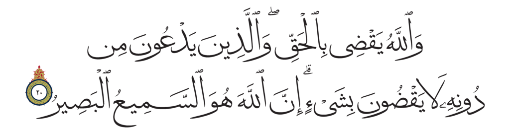 | Ghâfir 40, 20 | Qur’an Naskh Al-Fath Quran | ![]() |