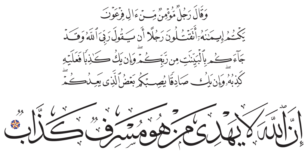 | Ghâfir 40, 28 | Qur’an Naskh Al-Fath Quran | ![]() |