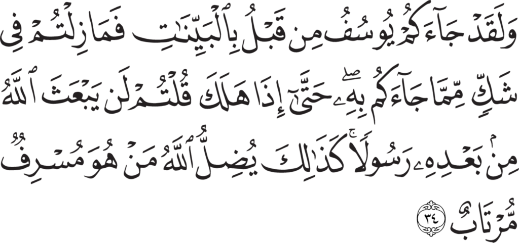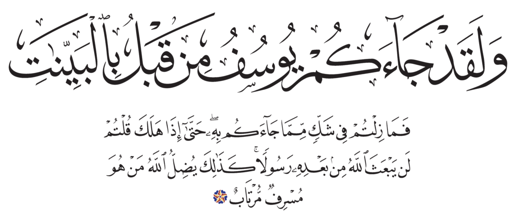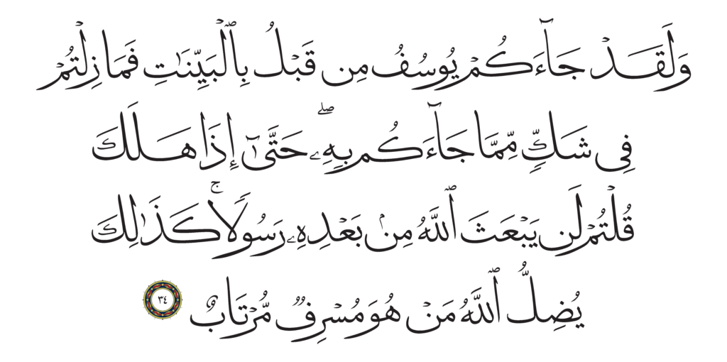 | Ghâfir 40, 34 | Qur’an Naskh Al-Fath Quran | ![]() |