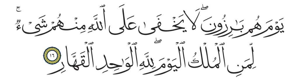 | Ghâfir 40, 16 | Qur’an Naskh Al-Fath Quran | ![]() |