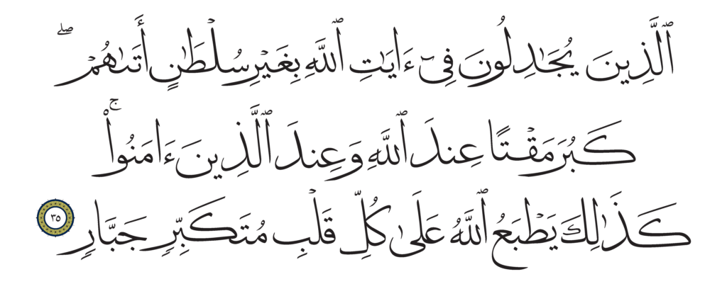 | Ghâfir 40, 35 | Qur’an Naskh Al-Fath Quran | ![]() |