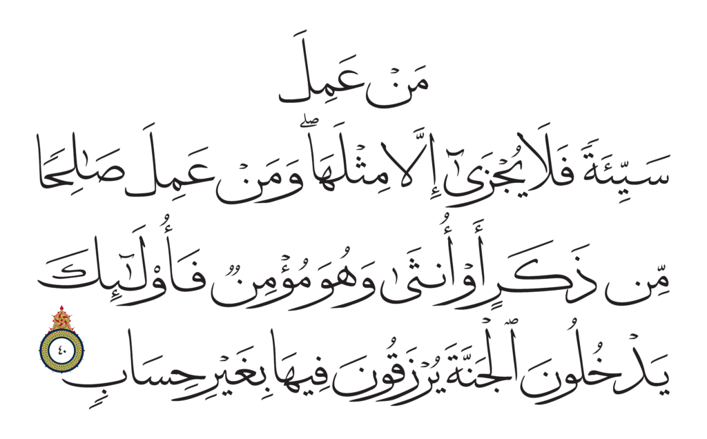 | Ghafir 40, 40 | Thuluth Qur’an Jawahir Al-Qur’an | ![]() |