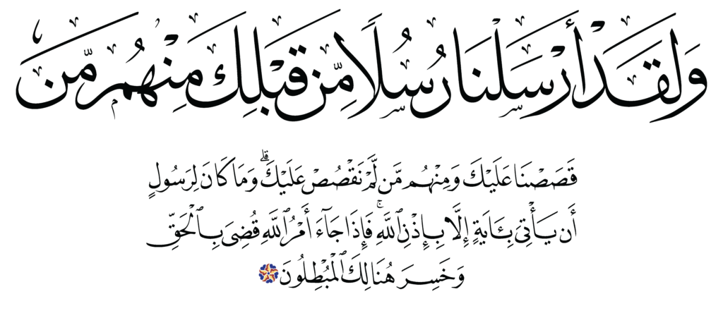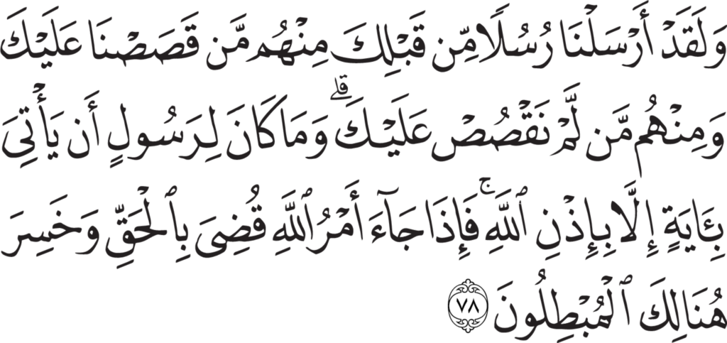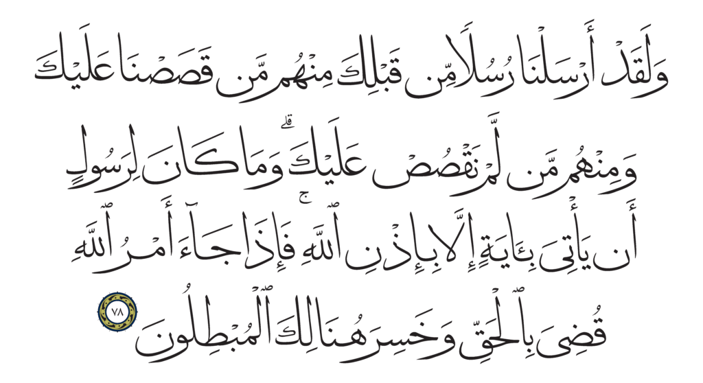 | Ghâfir 40, 78 | Qur’an Naskh Al-Fath Quran | ![]() |
