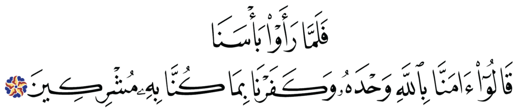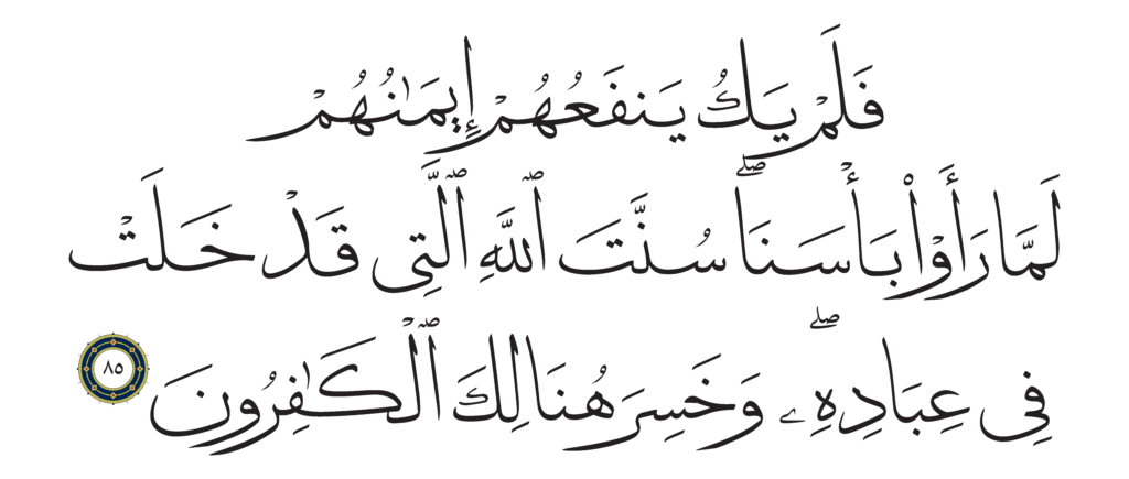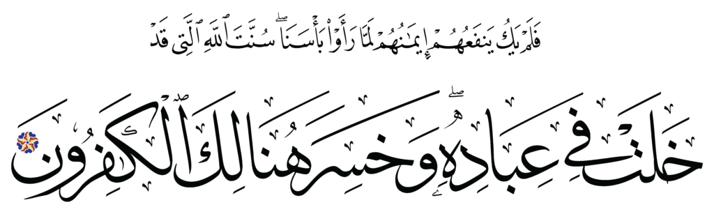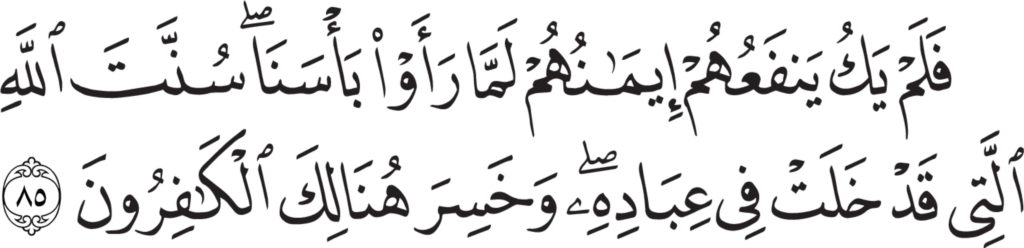 | Ghâfir 40, 85 | Qur’an Naskh Al-Fath Quran | ![]() |