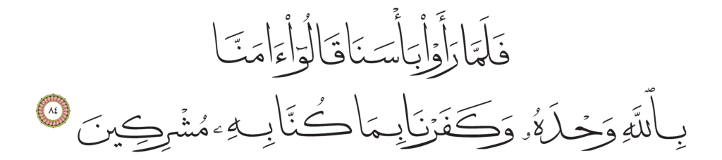 | Ghâfir 40, 84 | Qur’an Naskh Al-Fath Quran | ![]() |