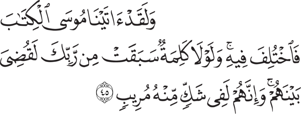 | Fussilat 41, 45 | Qur’an Naskh Al-Fath Quran | ![]() |