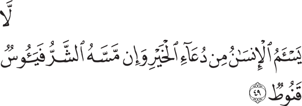 | Fussilat 41, 49 | Qur’an Naskh Al-Fath Quran | ![]() |