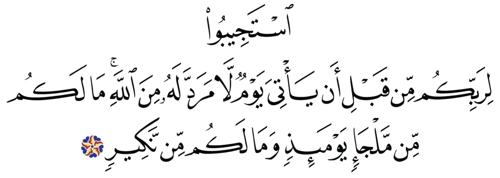 | Al-Shura 42, 47 | Qur’an Naskh Al-Fath Quran | ![]() |