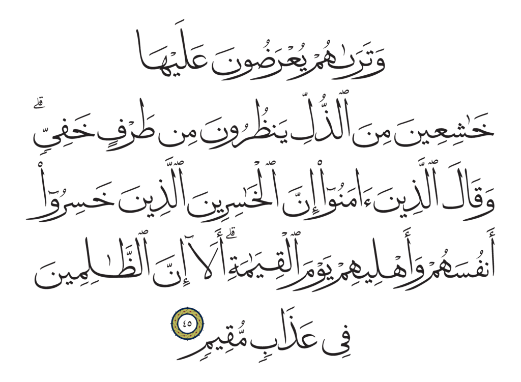| Al-Shura 42, 45 | Qur’an HM Queen Alia’s Mushaf | ![]() |