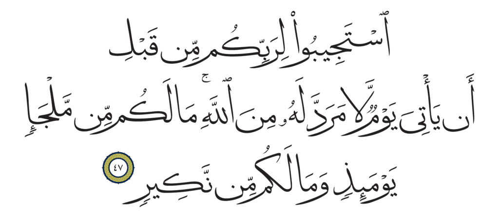 | Al-Shura 42, 47 | Qur’an HM Queen Alia’s Mushaf | ![]() |