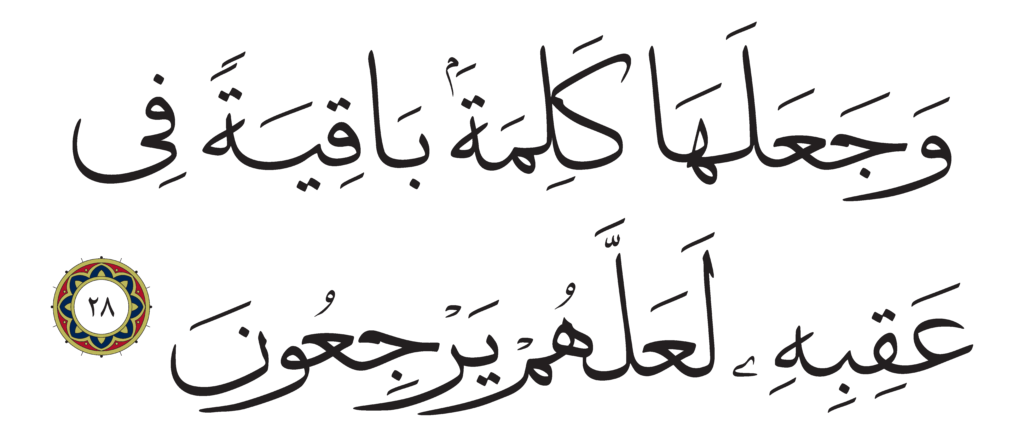 | Al-Zukhruf 43, 28 | Qur’an HM Queen Alia’s Mushaf | ![]() |