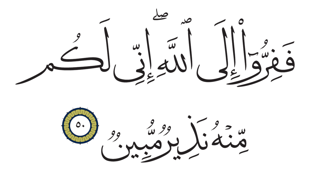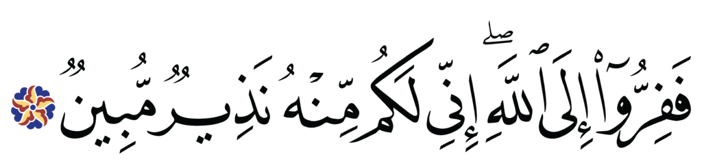 | Al-Dhariyat 51, 50 | Qur’an Naskh Al-Fath Quran | ![]() |