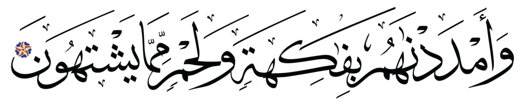 | Al-Tur 52, 22 | Qur’an Naskh Al-Fath Quran | ![]() |