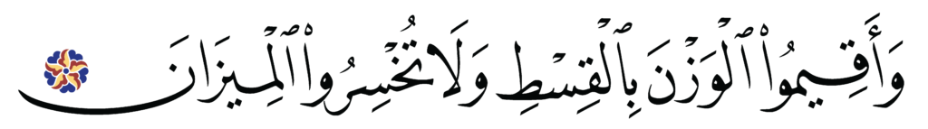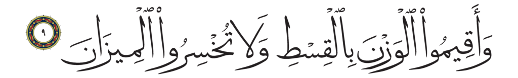 | Al-Rahman 55, 9 | Qur’an Naskh Al-Fath Quran | ![]() |