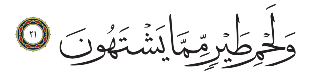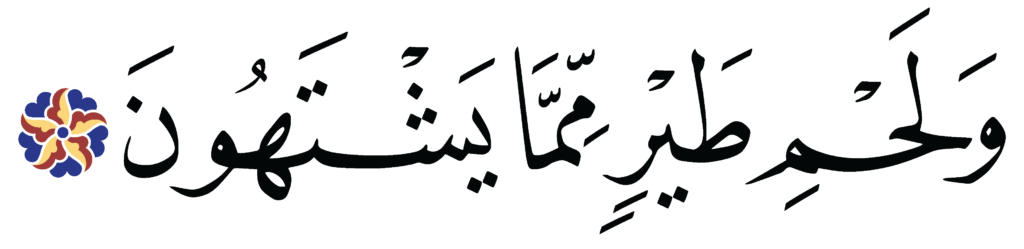 | Al-Waqi‘ah 56, 21 | Qur’an HM Queen Alia’s Mushaf | ![]() |