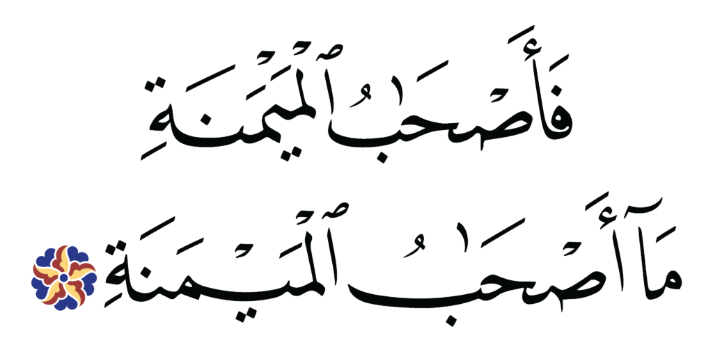 | Al-Waqi‘ah 56, 8 | Qur’an HM Queen Alia’s Mushaf | ![]() |