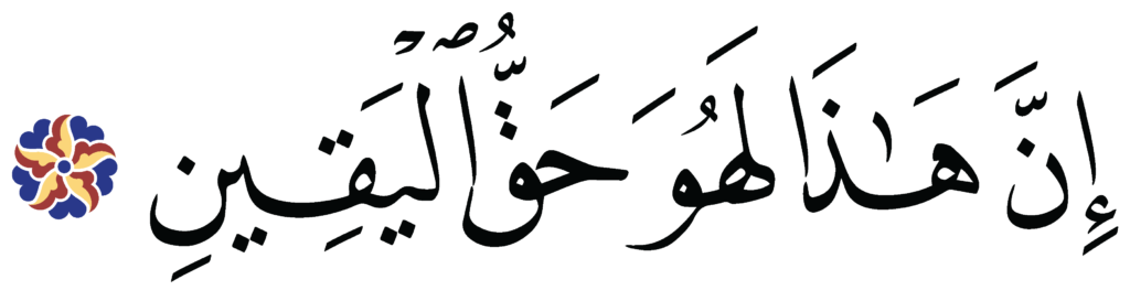| Al-Waqi‘ah 56, 95 | Qur’an Naskh Al-Fath Quran | ![]() |