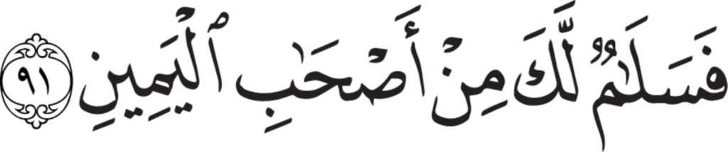 | Al-Waqi‘ah 56, 91 | Qur’an Naskh Al-Fath Quran | ![]() |