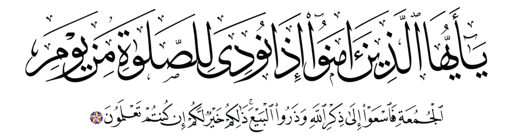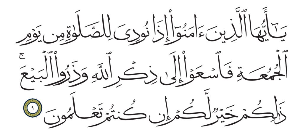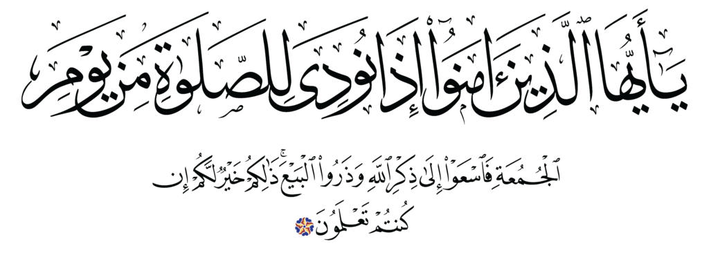| Al-Jumu‘ah 62, 9 | Qur’an HM Queen Alia’s Mushaf | ![]() |