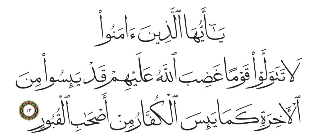 | Al-Mumtahanah 60, 13 | Qur’an Naskh Al-Fath Quran | ![]() |