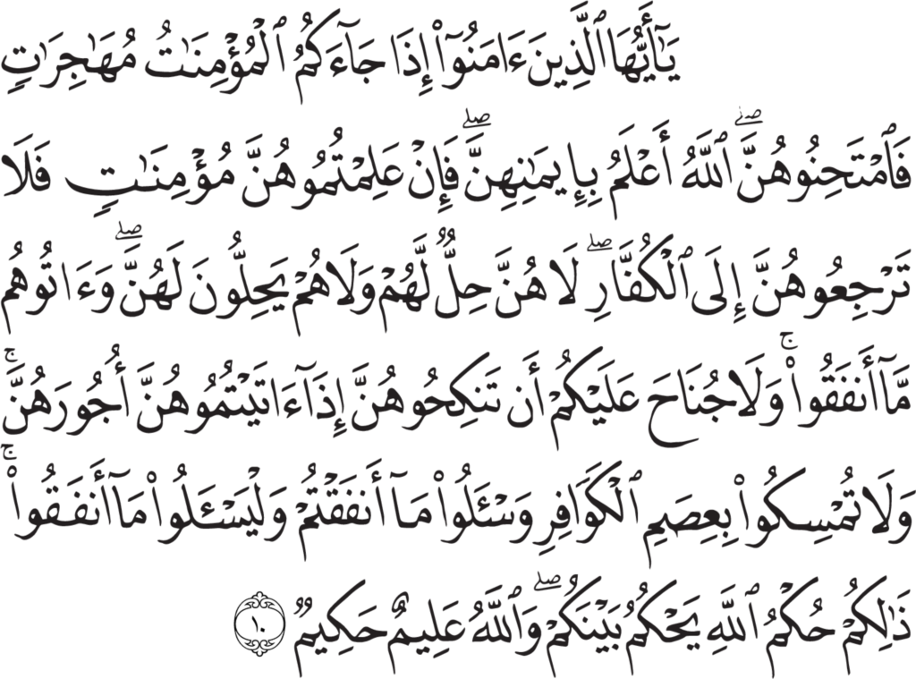 | Al-Mumtahanah 60, 10 | Qur’an Naskh Al-Fath Quran | ![]() |