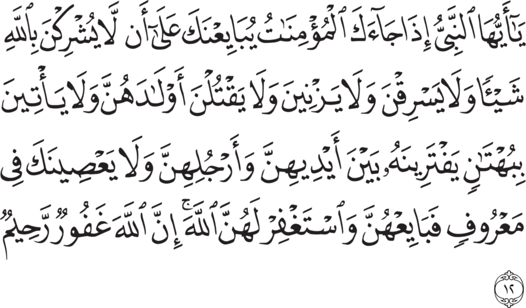 | Al-Mumtahanah 60, 12 | Qur’an Naskh Al-Fath Quran | ![]() |