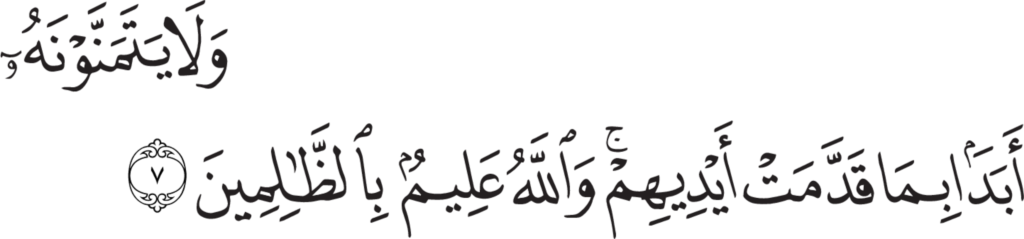 | Al-Jumu‘ah 62, 7 | Qur’an HM Queen Alia’s Mushaf | ![]() |