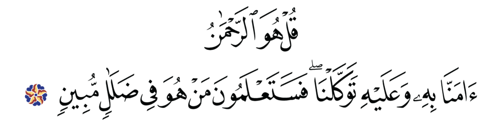 | Al-Mulk 67, 29 | Thuluth Qur’an Calligraphy in the public domain | ![]() |