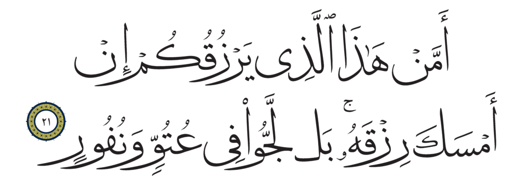 | Al-Mulk 67, 21 | Qur’an HM Queen Alia’s Mushaf | ![]() |