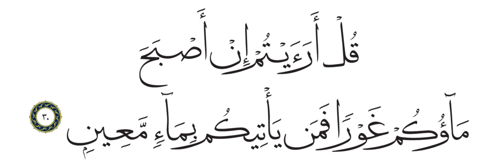 | Al-Mulk 67, 30 | Qur’an HM Queen Alia’s Mushaf | ![]() |