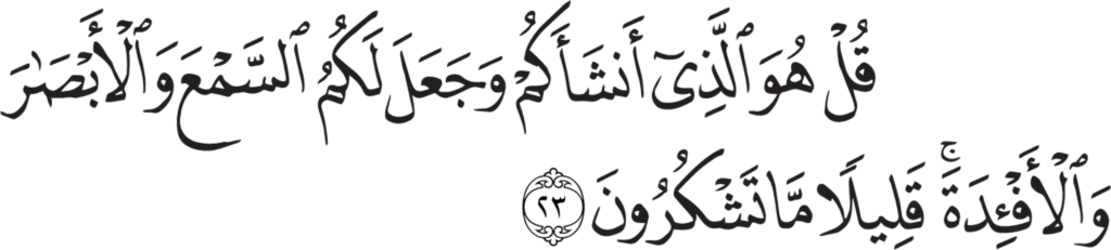 | Al-Mulk 67, 23 | Qur’an Naskh Al-Fath Quran | ![]() |