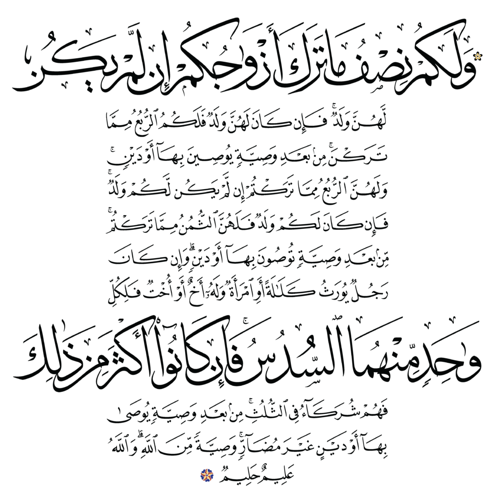 | النساء 4، 12 | القرآن الكريم مصحف جلالة الملكة علياء | ![]() |