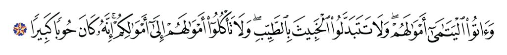 | النساء ٤: ٢ | النسخ القرآن الكريم مصحف الفتح | ![]() |