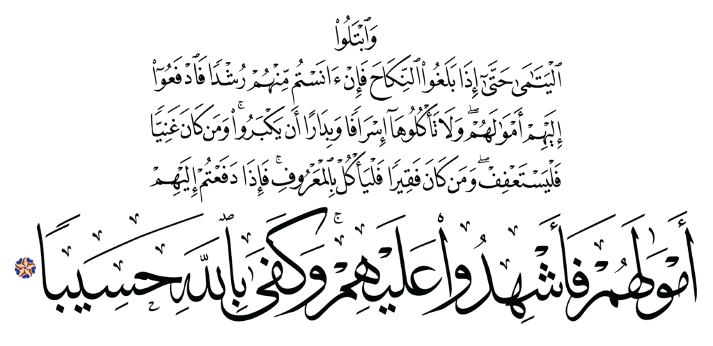 | النساء ٤: ٦ | النسخ القرآن الكريم مصحف الفتح | ![]() |