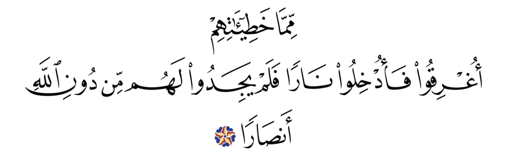 | نوح ٧١: ٢٥ | النسخ القرآن الكريم مصحف الفتح | ![]() |