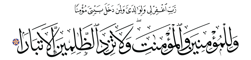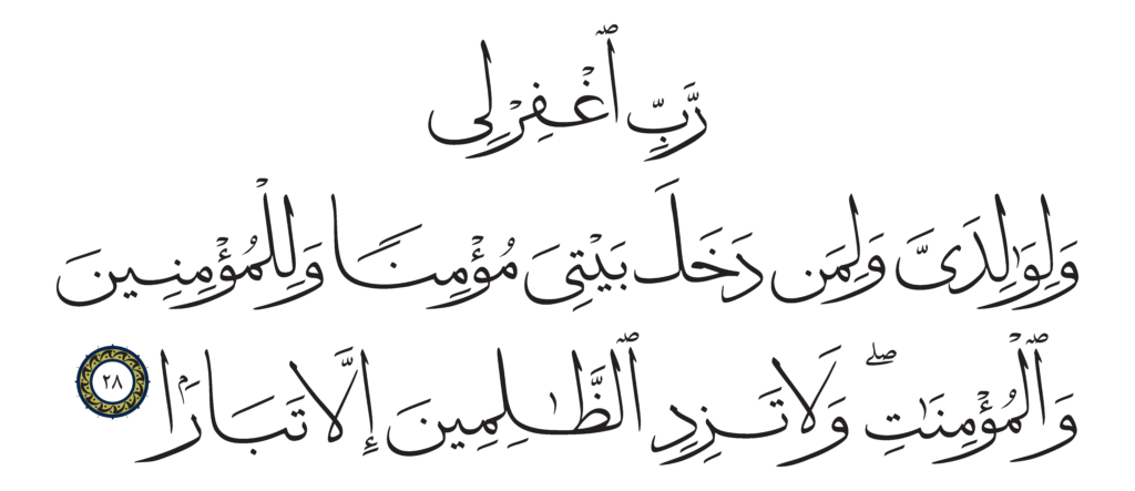 | نوح ٧١ : ٢٨ | حسن كنعان / كلية الفنون والعمارة الإسلامية النسخ الثلث القرآن الكريم الدعاء | ![]() |