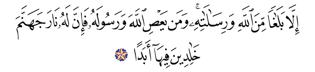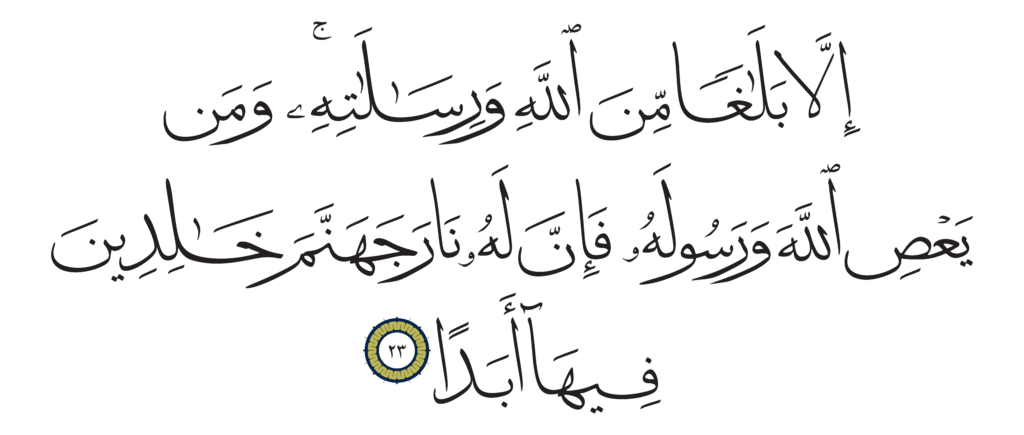 | الجن ٧٢: ٢٣ | النسخ القرآن الكريم مصحف الفتح | ![]() |