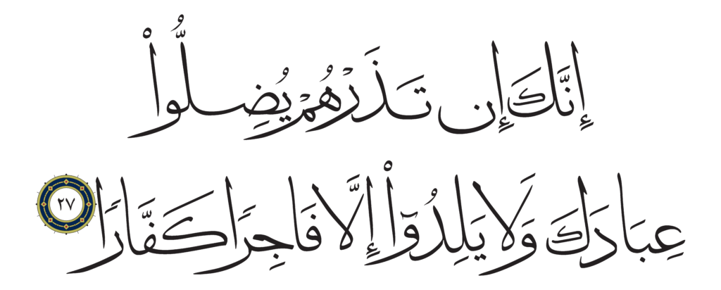 | نوح ٧١: ٢٧ | القرآن الكريم مصحف الفتح النسخ | ![]() |