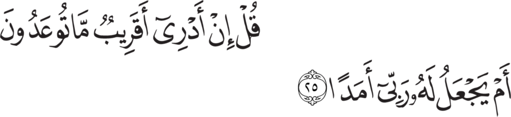 | الجن ٧٢: ٢٥ | النسخ القرآن الكريم مصحف الفتح | ![]() |