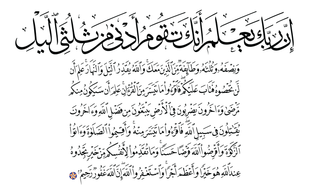 | المزمل ٧٣: ٢١ | الثلث القرآن الكريم فن الخط في المجال العام | ![]() |